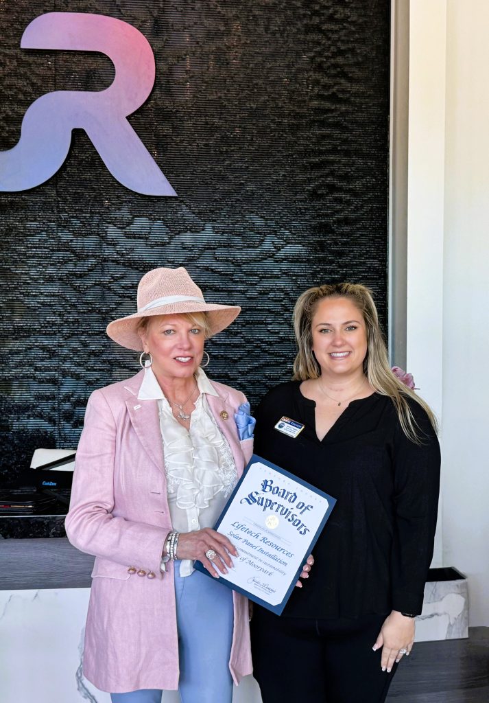 - Board of Supervisors, 4th District: Janice S. Parvin, Chair, presented a Certificate of Appreciation for Lifetech’s commitment to sustainability.